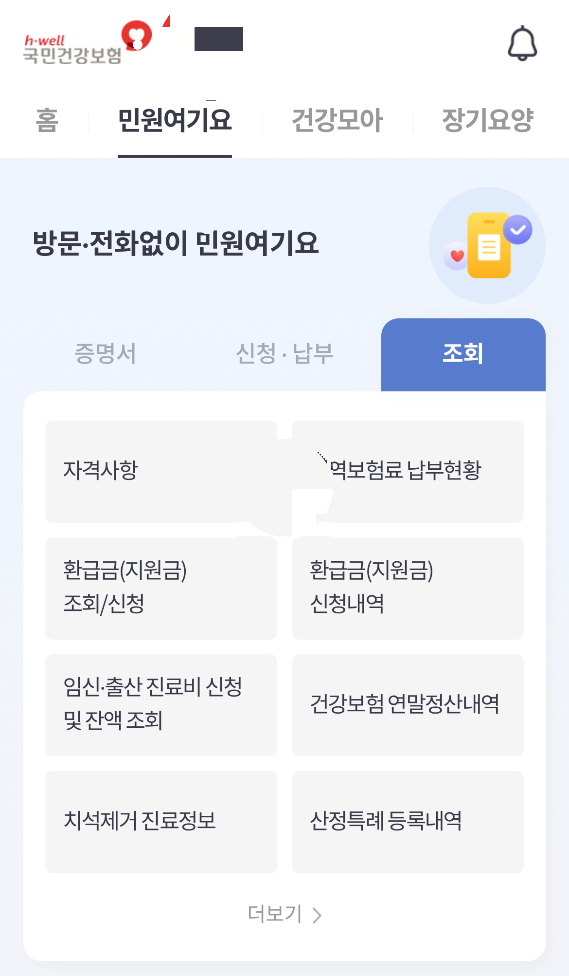 - [민원여기요] → [보험료 조회/납부] 메뉴 선택