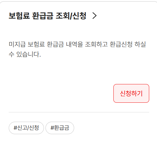- '민원여기요' → '개인민원' → '보험료 조회/신청' → '보험료 환급금 조회/신청' 메뉴를 선택합니다.