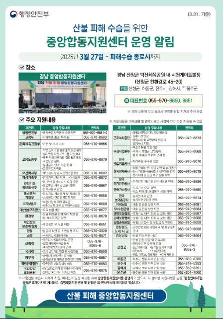 <<경북·경남 산불 재난지원금 신청 요약표>>