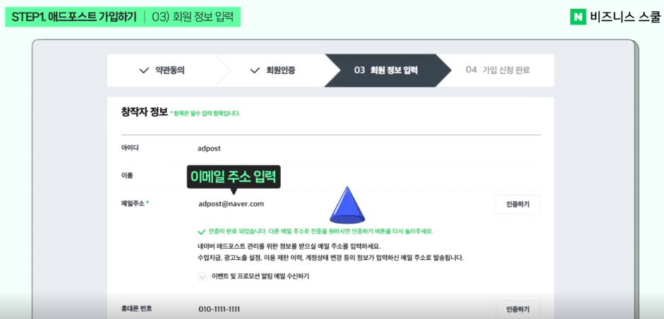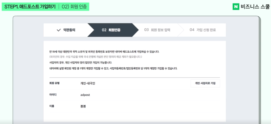 - '애드포스트 시작하기' 버튼을 클릭하여 가입 절차를 진행합니다.