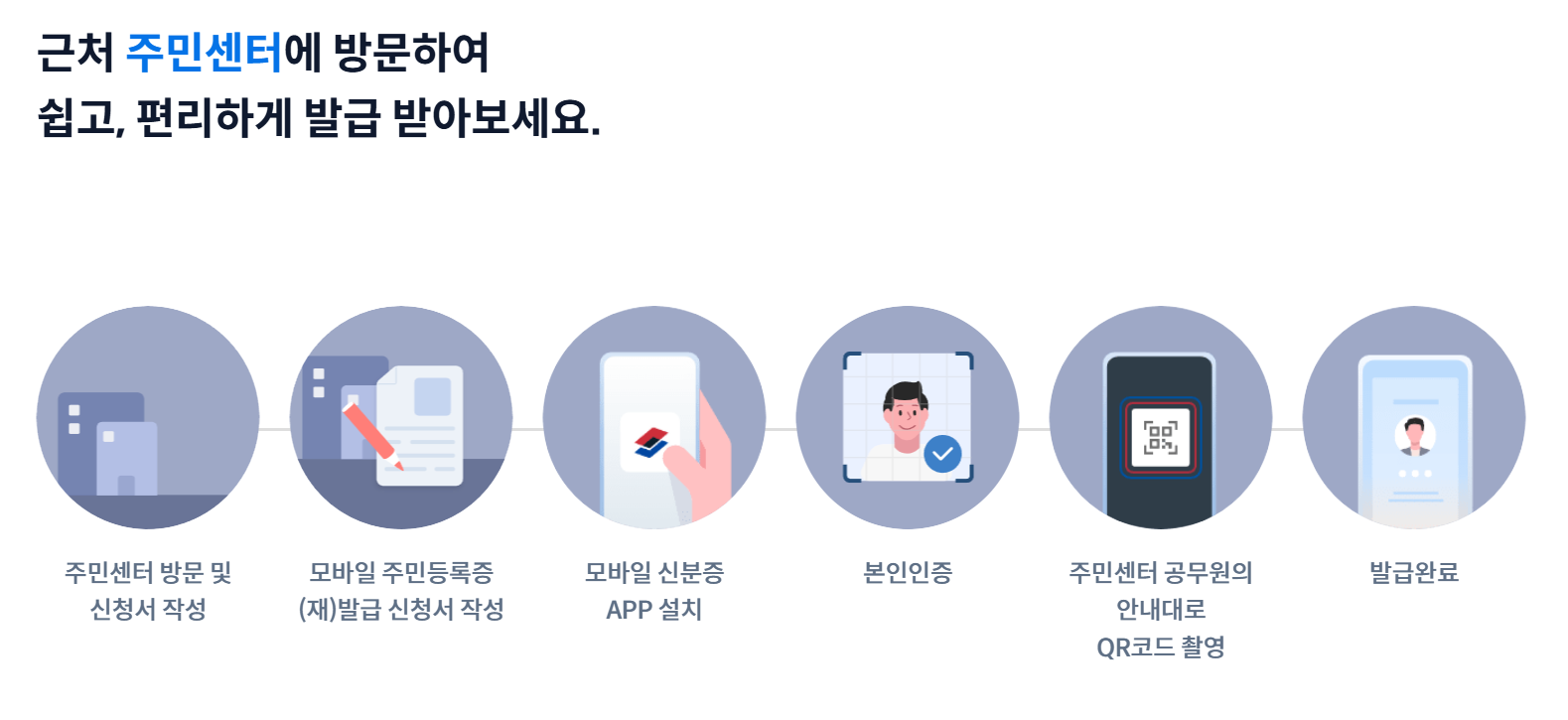 1️⃣ 주민센터 방문하여 신원 확인 후 QR 코드 발급