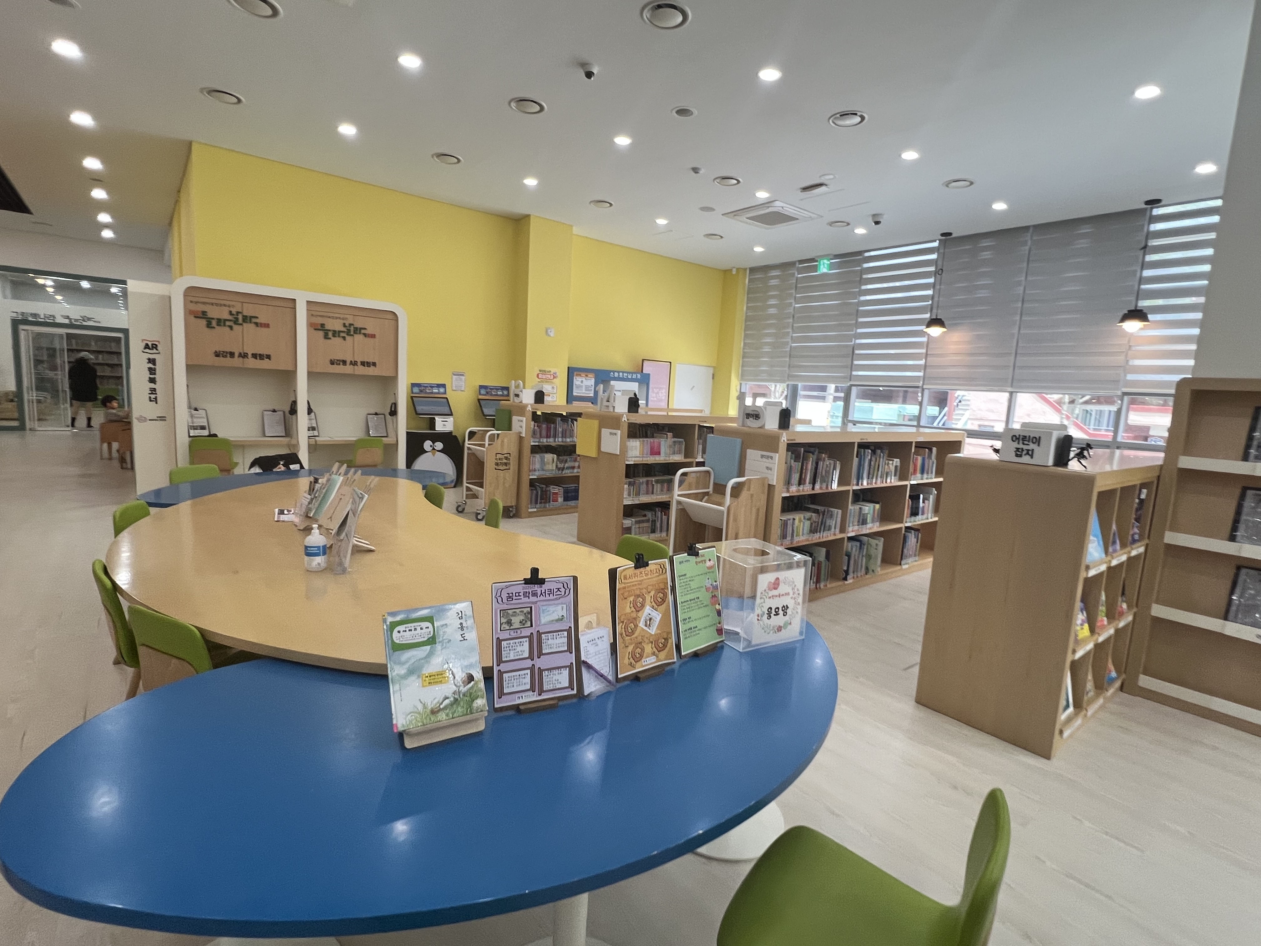 - 그림책나라 (들락날락 공간): 영유아용 동화책 다수 비치, 부모와 함께 책 읽기 가능