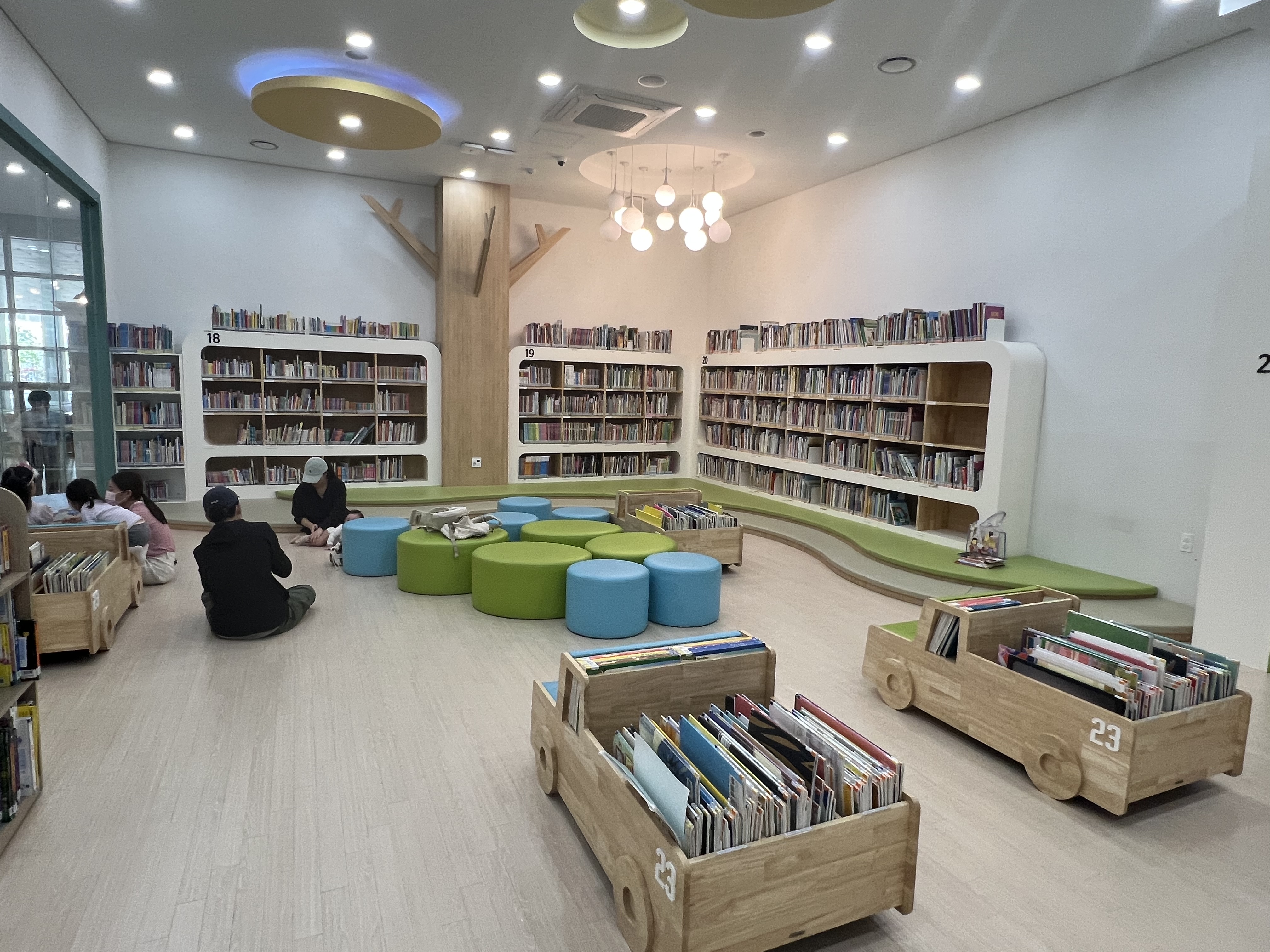 - 특징: 조용한 도서관이 아닌 아이 중심의 ‘활발한 독서 공간’