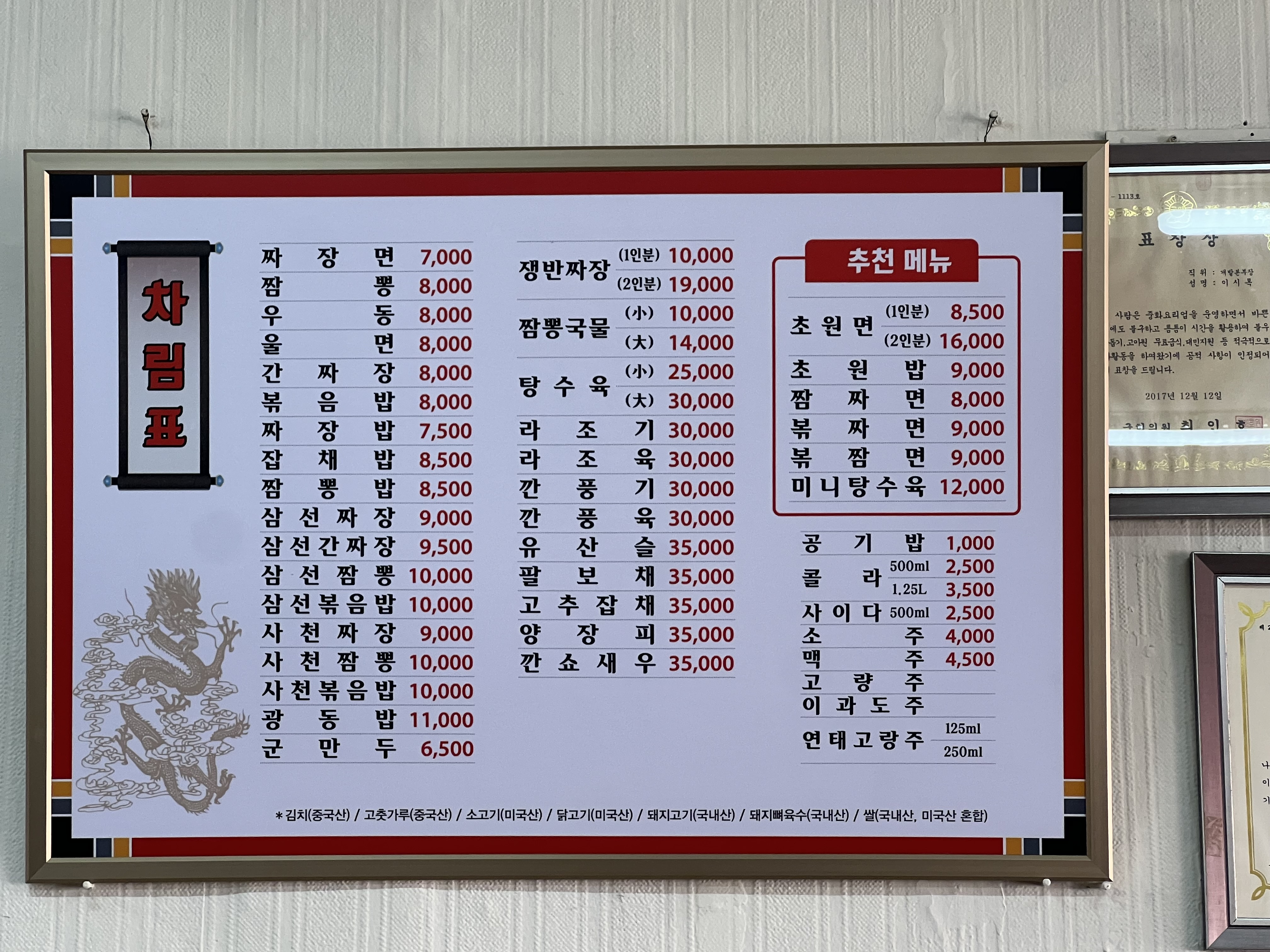 ✔ 짬뽕, 짜장면뿐만 아니라 특별한 메뉴(초원면)를 경험하고 싶은 분들