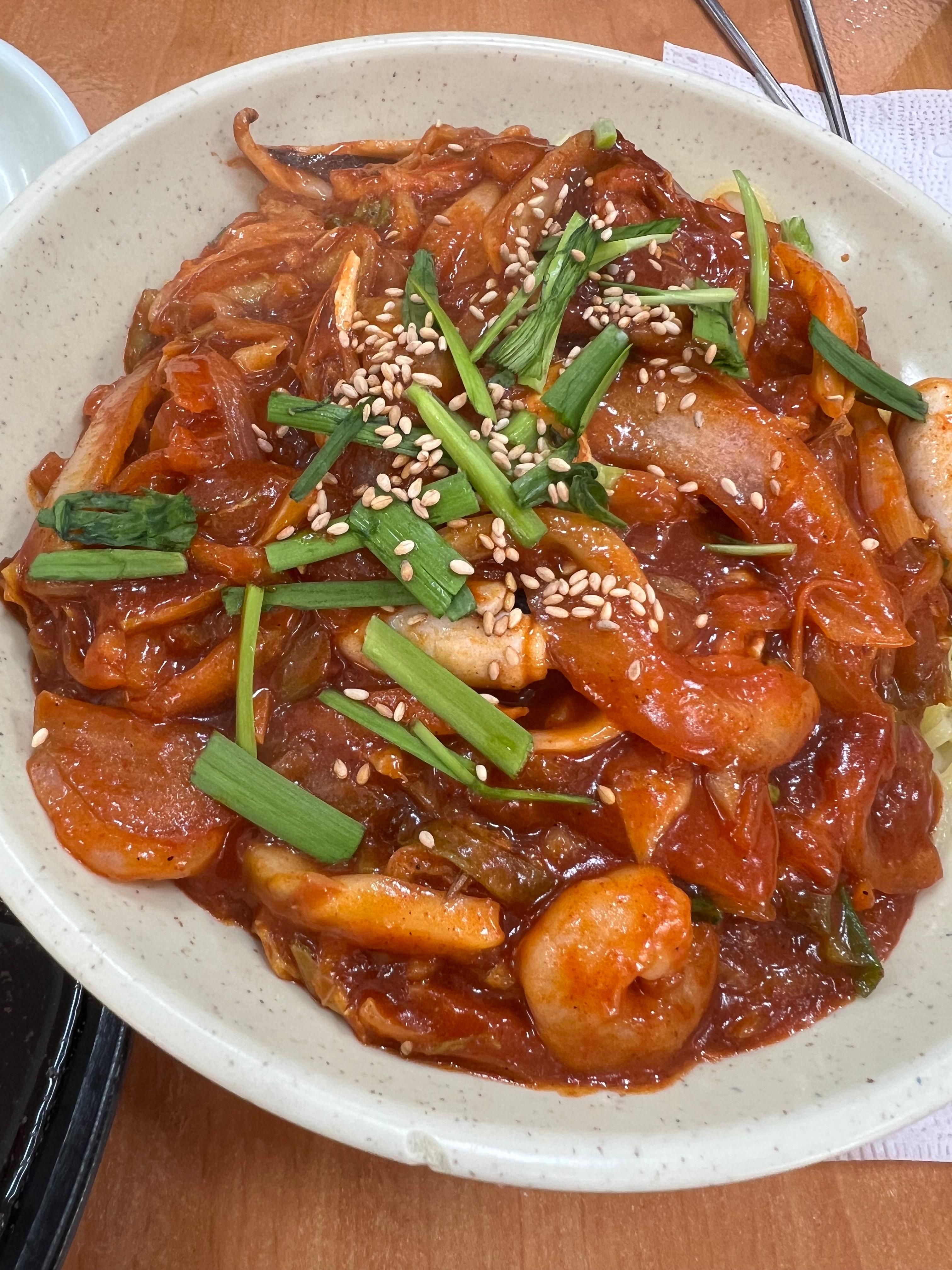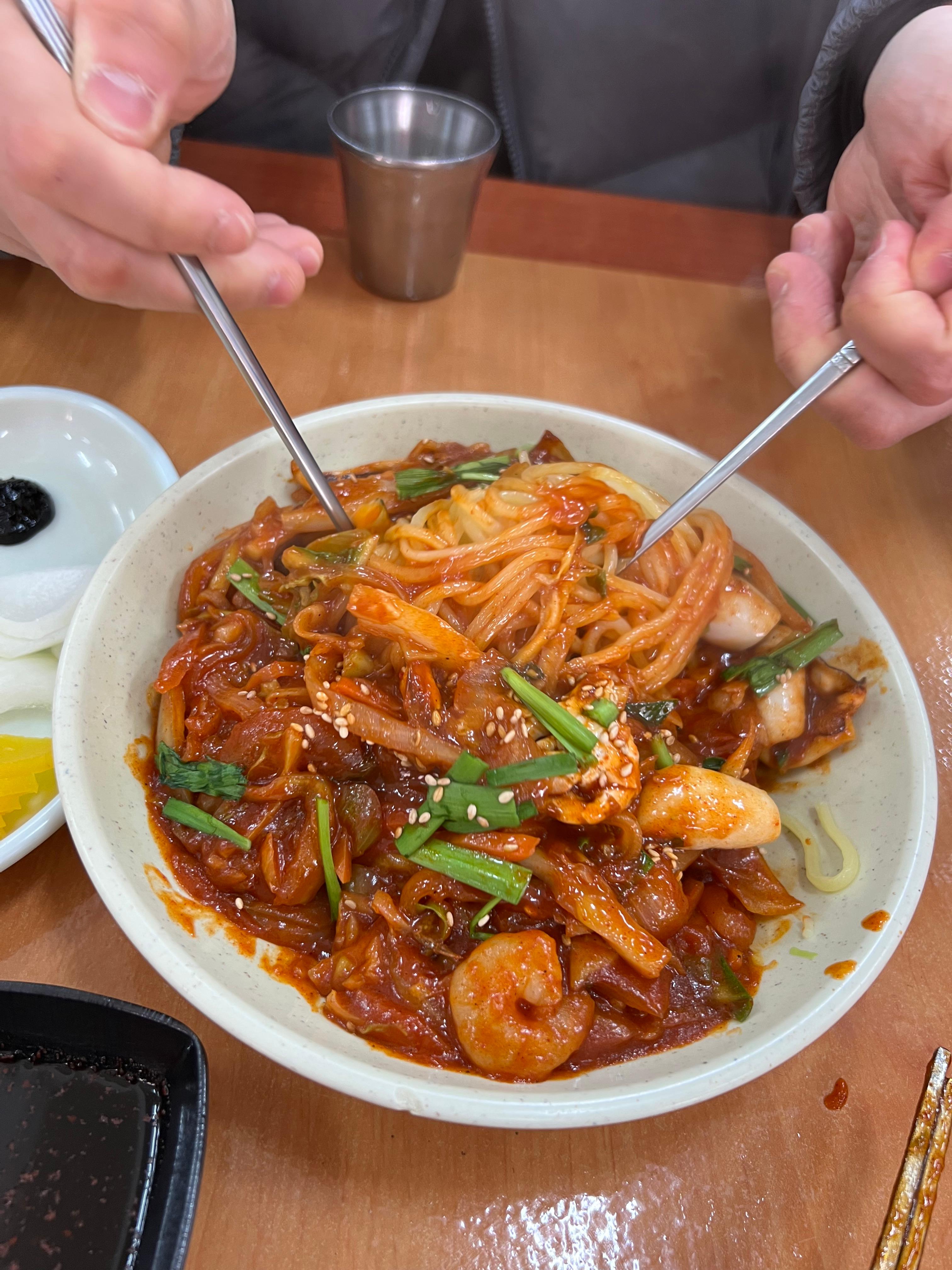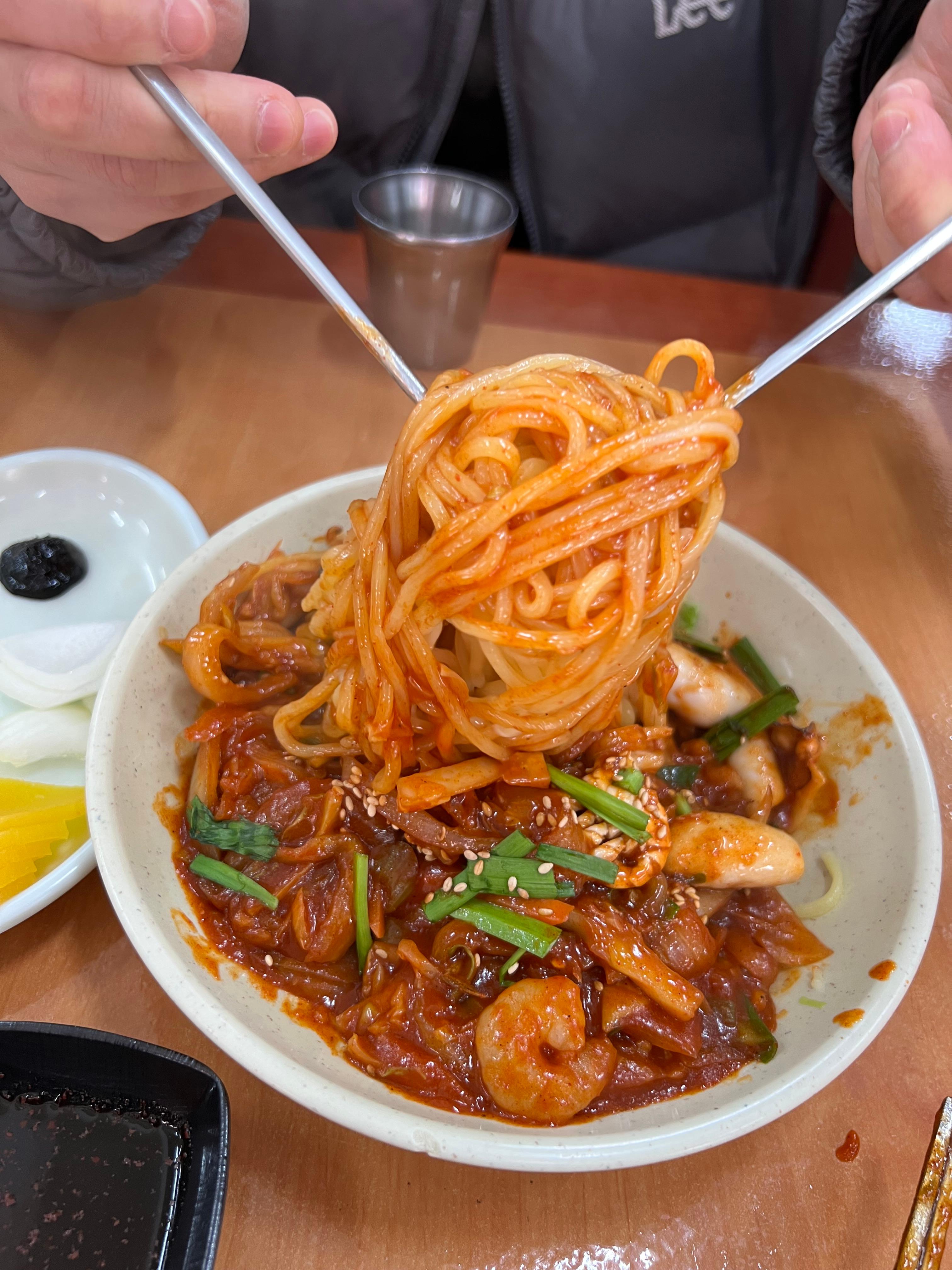해산물이 듬뿍 들어간 매콤달콤한 양념에 쫄깃한 면발이 완벽하게 어우러져 있습니다.