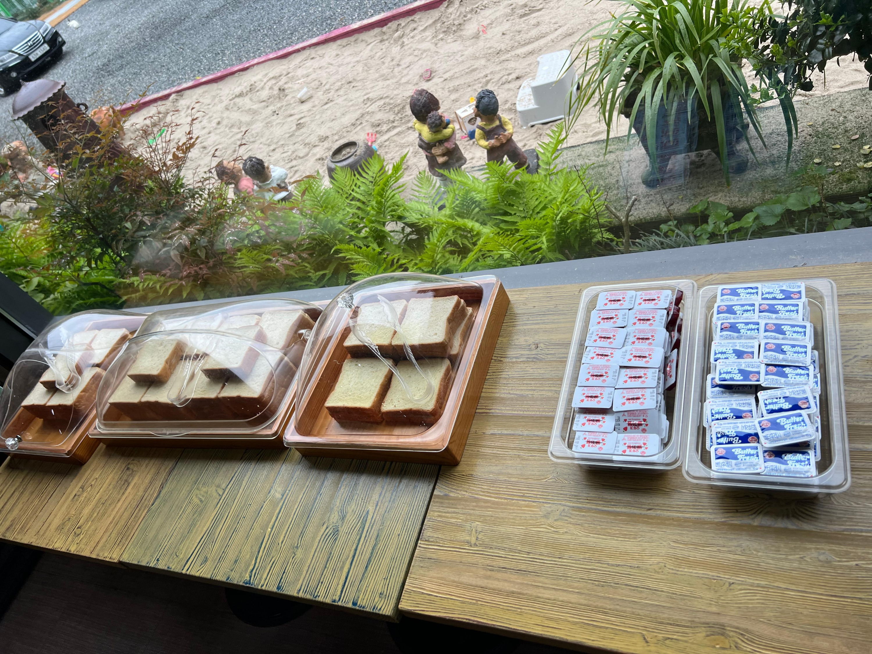 - 메뉴: 식빵, 버터, 딸기잼, 커피, 음료 등
