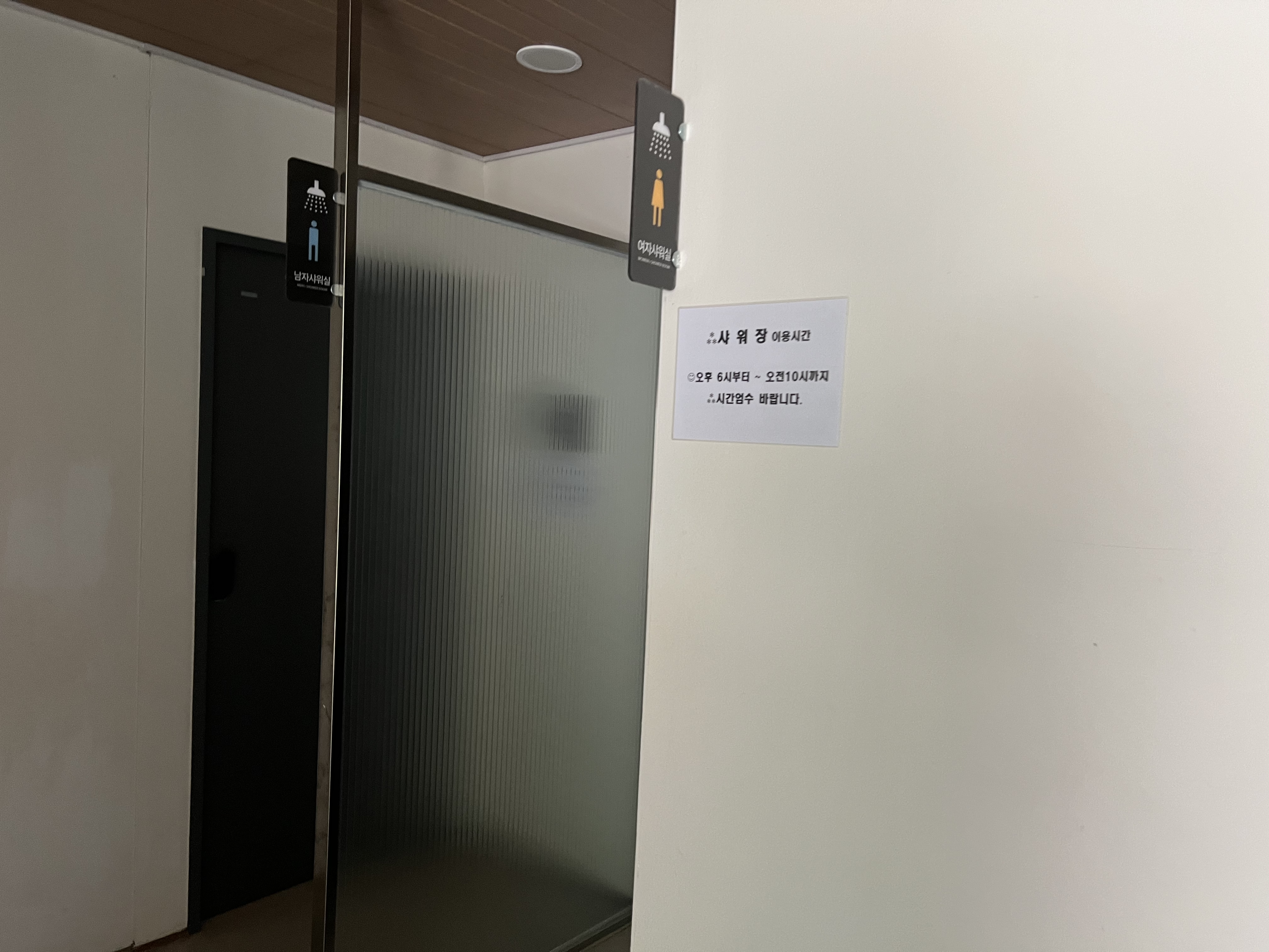 - 샤워실: 관리동 오른편에 위치, 이용 시간은 18:00 ~ 10:00