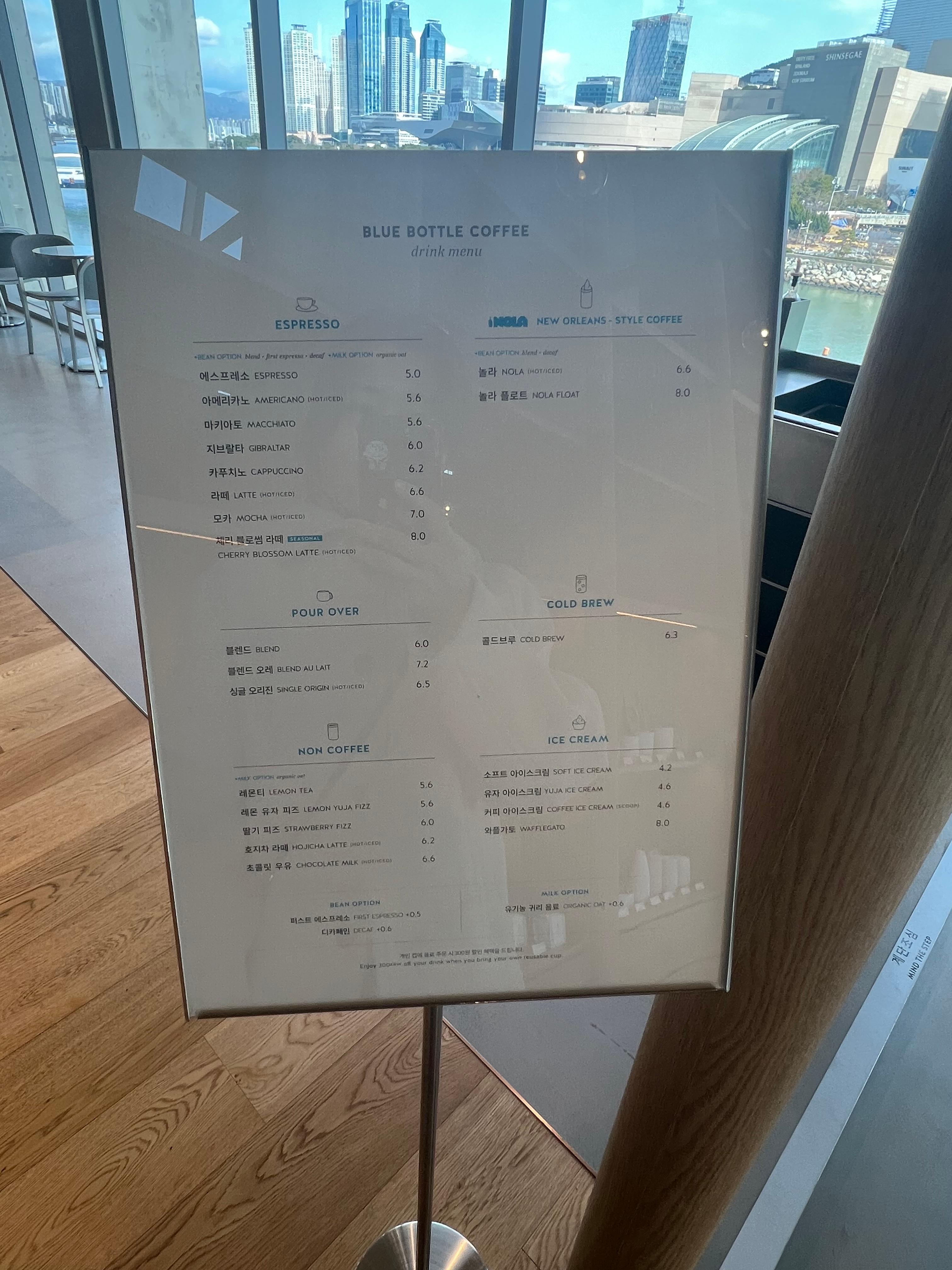 4. 부산 블루보틀 추천 메뉴 & 가격 정보