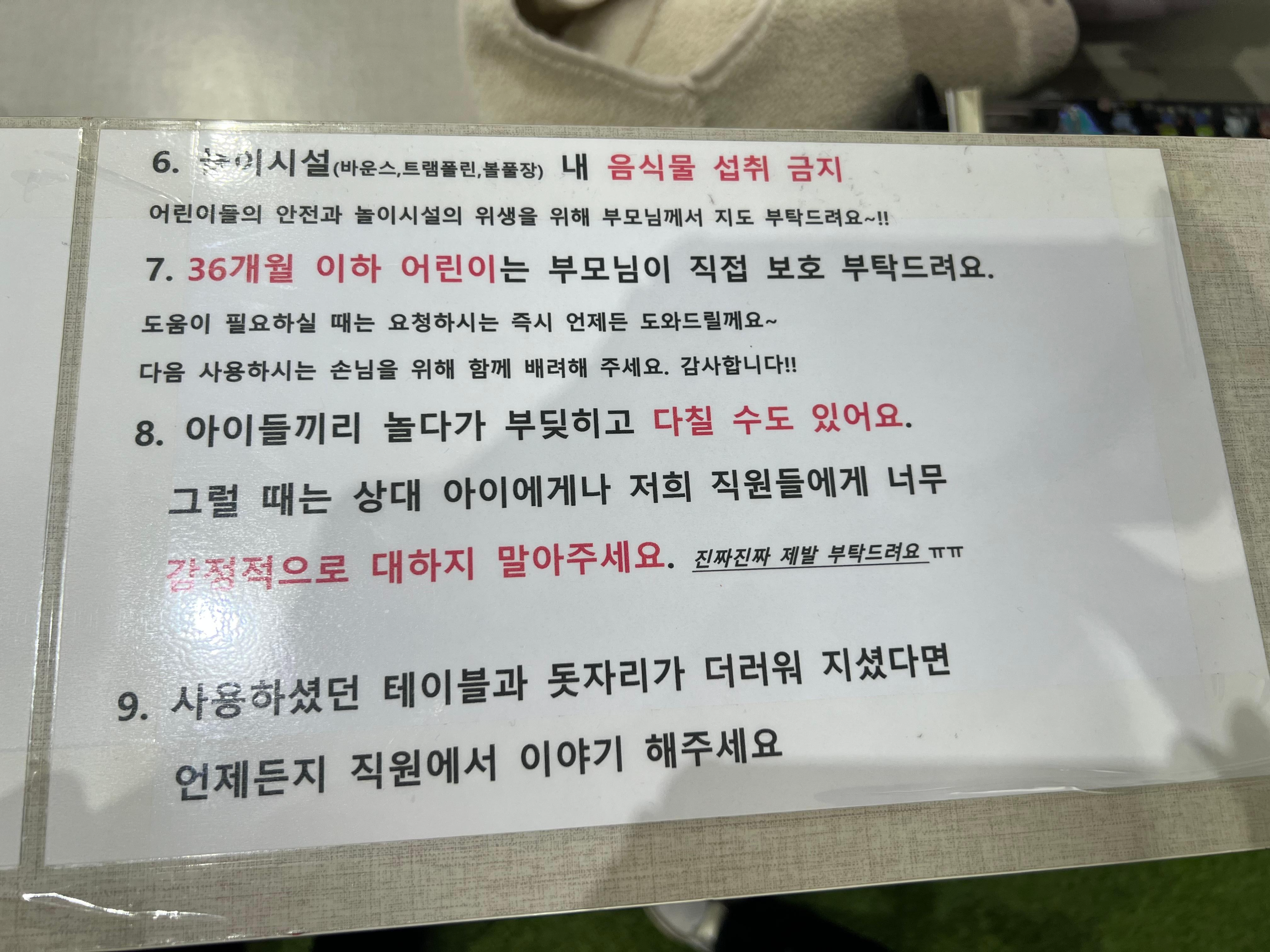 - 볼풀장 9세 초과 금지 (규칙 준수)