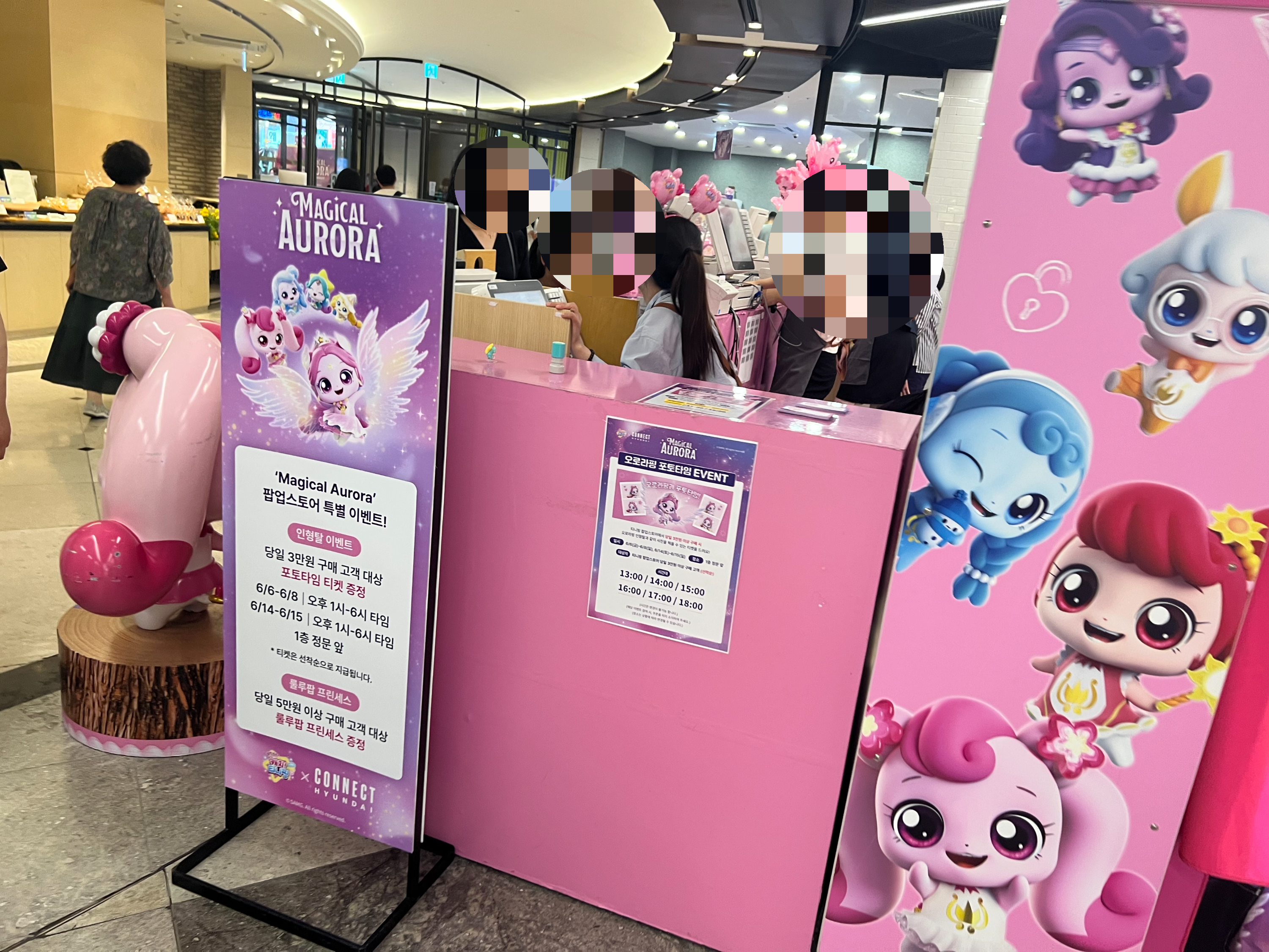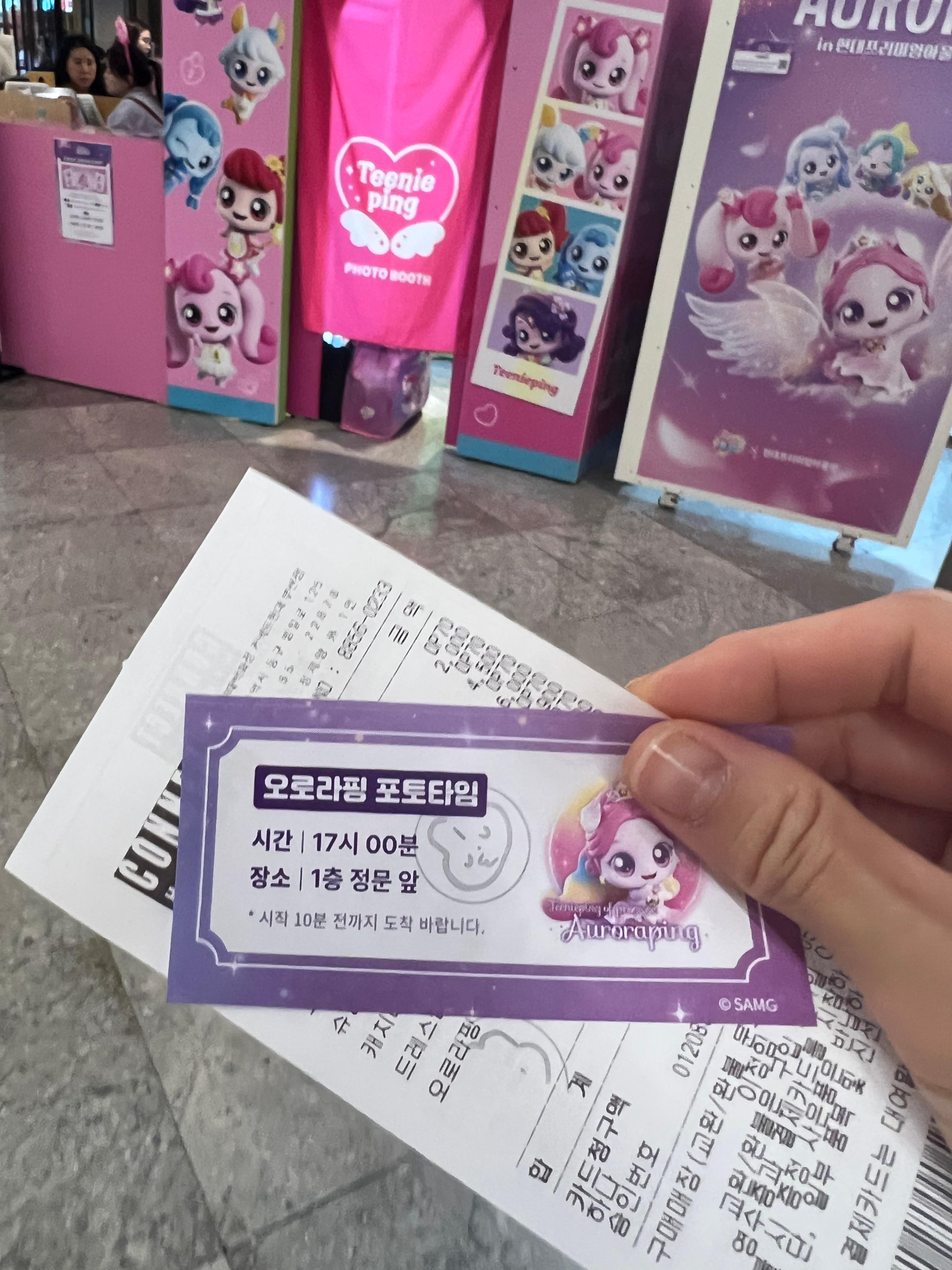 - 웨이팅 팁: 지하 2층에서 굿즈를 3만원이상 구매해야지만 포토티켓을 수령할수 있어요. 오로라핑과 사진을 찍고 싶은 분들은 제일 먼저 지하 2층으로 가서 굿즈를 구매하시길 추천드리고, 포토타임 15분전에 대기라인에 줄을 서면 제일 먼저 찍을수 있답니다.