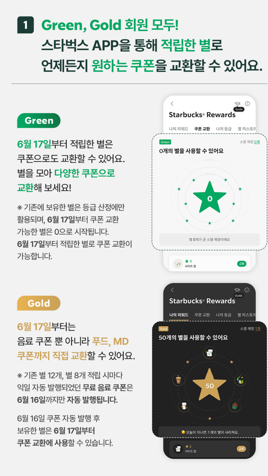 - 6월 17일부터 새로 적립하는 별만 쿠폰 교환 가능