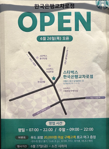 서울 한복판, 역사적 가치와 현대적 감성이 공존하는 공간에 스타벅스 한국은행교차로점이 드디어 오픈했습니다. 남대문과 을지로입구 사이, 한국은행교차로에 들어선 이 매장은 접근성도 좋고 주변 풍경도 매력적이라요. 오픈일은 6월 26일 목요일! 신선한 음료 한 잔과 함께 선물까지 받을 수 있는 특별한 이벤트도 준비되어 있어, 스타벅스러움을 한껏 느껴볼 수 있답니다. 평소 커피 한 잔으로 여유를 즐기시던 분들은 물론, 북적이는 도심 속 힐링 타임을 찾는 분들에게도 제격인 곳이에요. 멋진 오픈 이벤트와 함께 한층 업그레이드된 스타벅스 경험을 지금 소개해드릴게요!