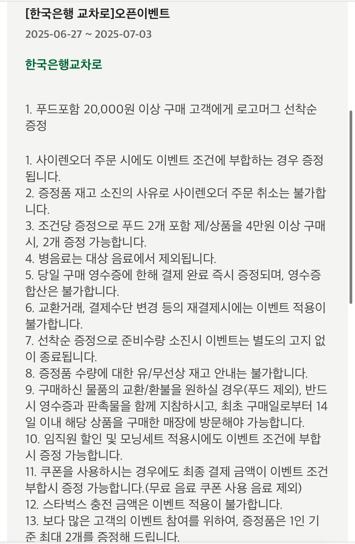 - 직원 할인 및 모닝 세트 적용 고객도 이벤트 대상