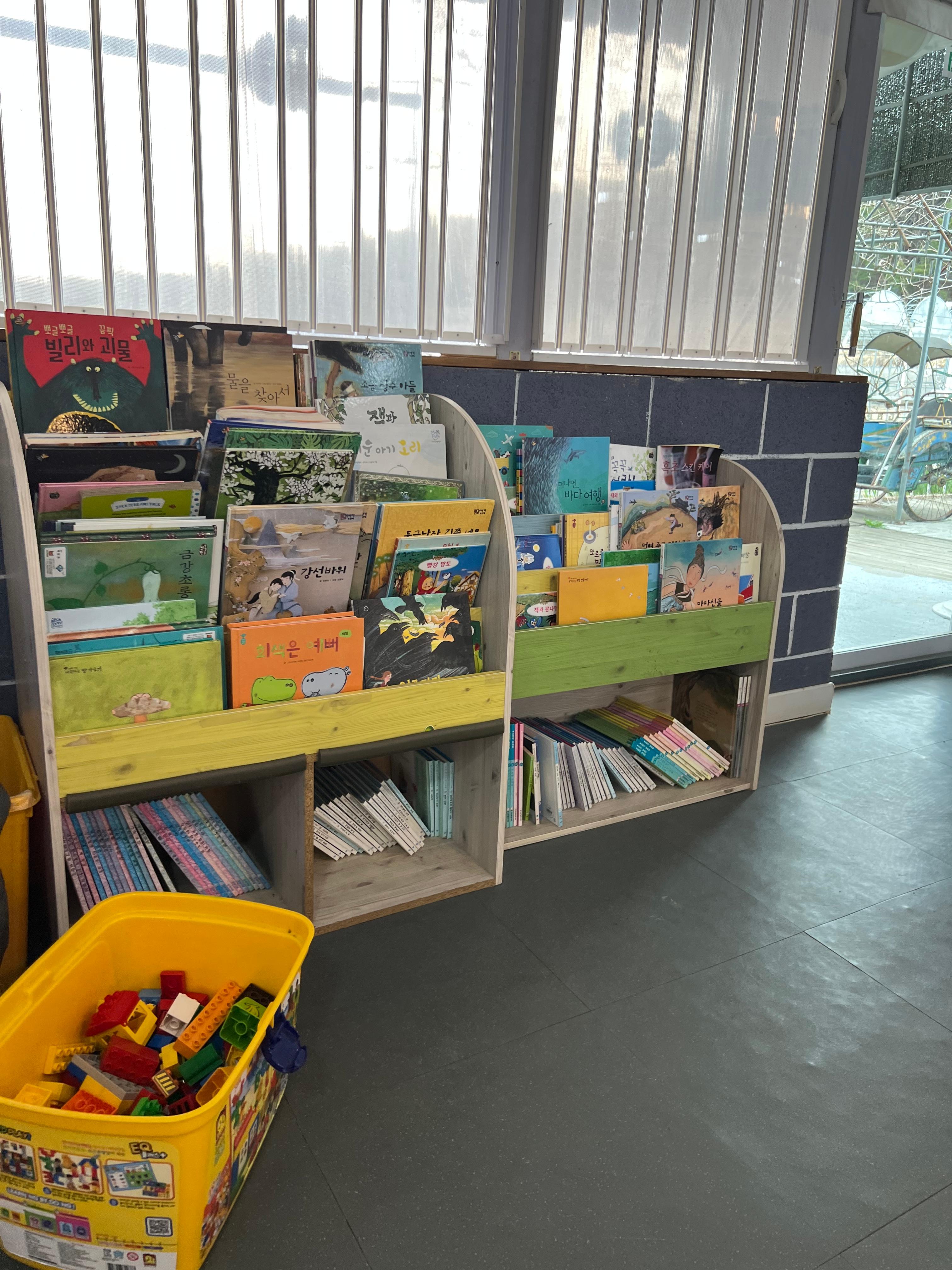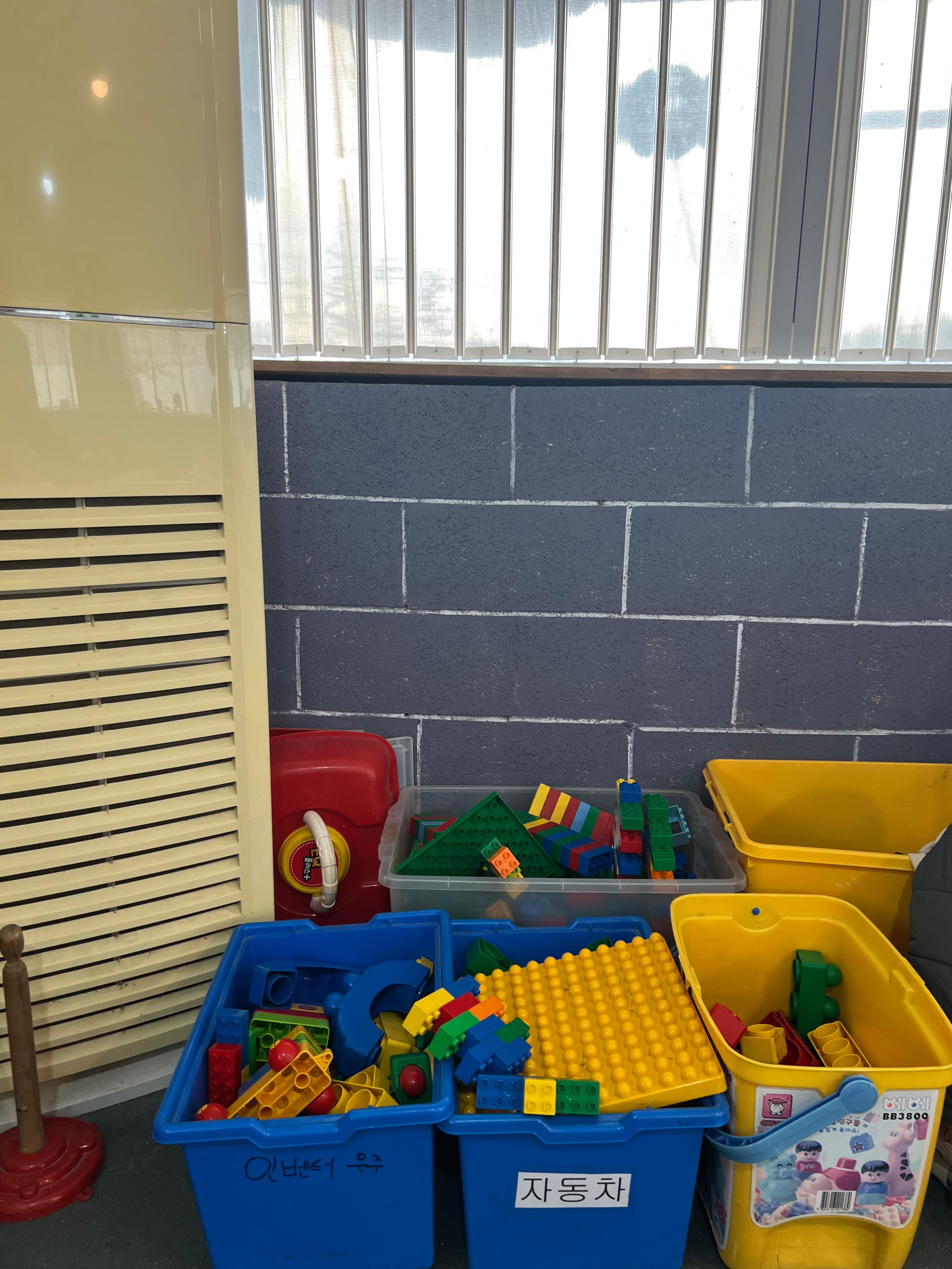 - 실내 공간: 피자 굽는 동안 아이들이 놀 수 있는 블록, 책, 장난감 등이 비치되어 있습니다.