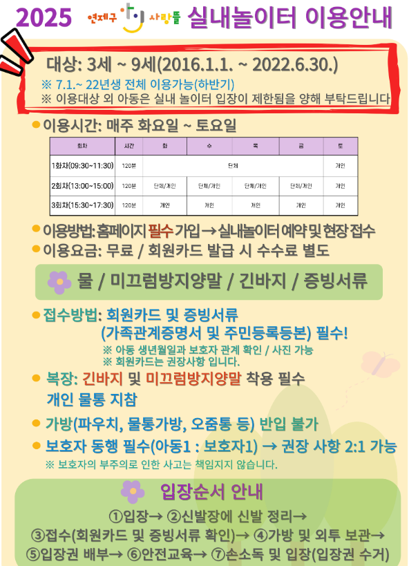 ✅ 이용 대상(3세~9세) 외 아동은 입장 불가