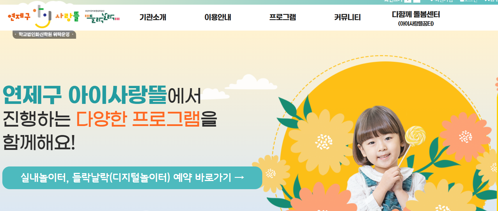 - 연제구 아이사랑뜰 공식 홈페이지 접속