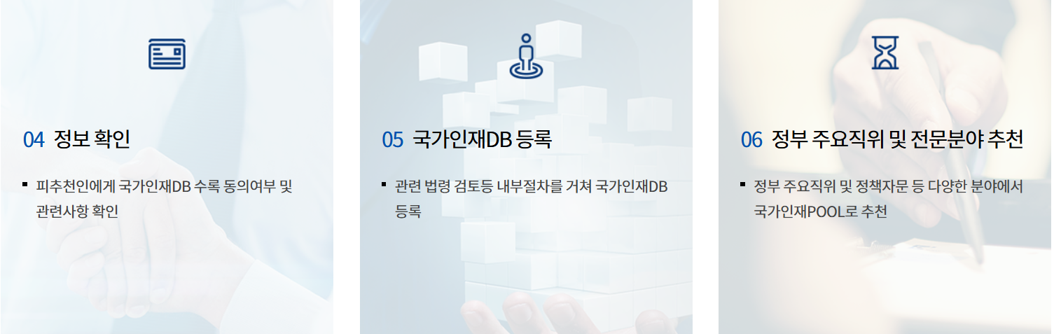 이렇게 국민이 추천한 인재들은 인사혁신처가 운영하는 **국가인재데이터베이스(DB)**에 등록되어 향후 고위공직 인사에 활용됩니다.