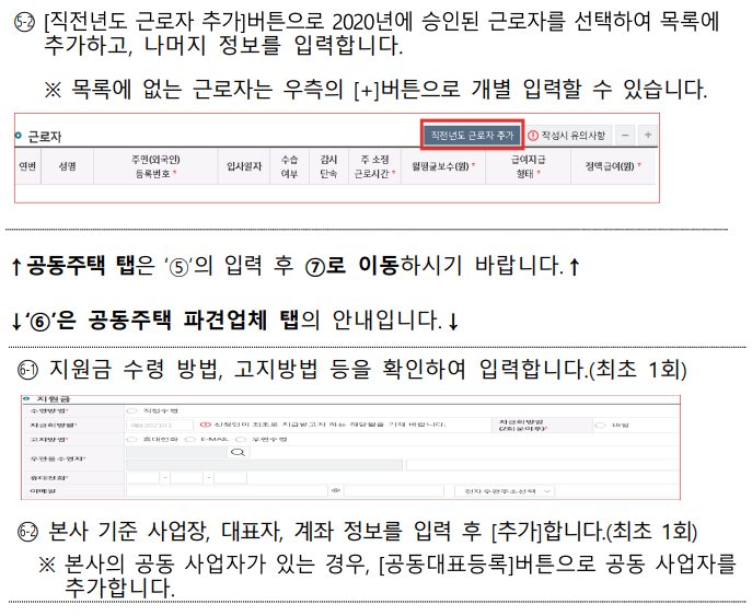 | 근로자 추가 방식 | 직접 추가 또는 엑셀 | 직전년도 기준 또는 개별 추가 |
