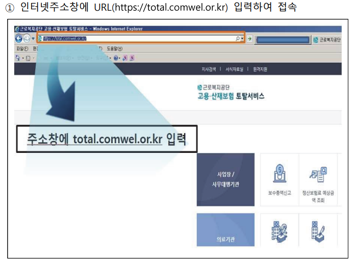 - 사이트 접속: http://total.kcomwel.or.kr/main.do