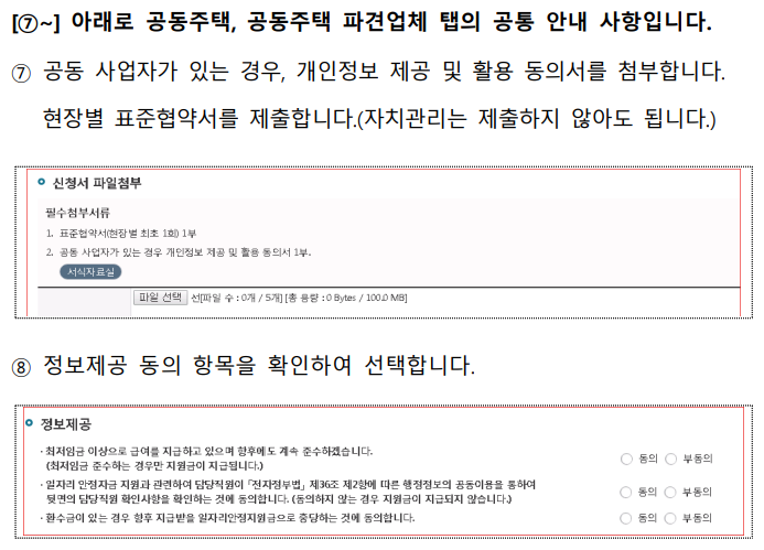 | 동의서 제출 | 개인정보 제공 동의 | 개인정보 제공 동의 + 표준협약서 (자치관리 제외) |