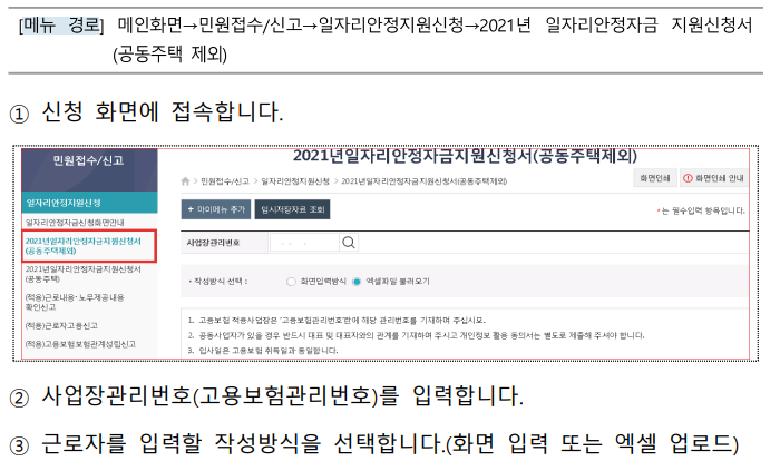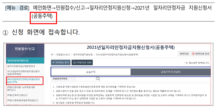 2025년 현재 신규 신청은 불가하나, 일반사업장(공동주택 제외)과 공동주택 사업장(자치관리 및 파견업체)의 일자리안정자금 신청 방법은 아래와 같습니다.