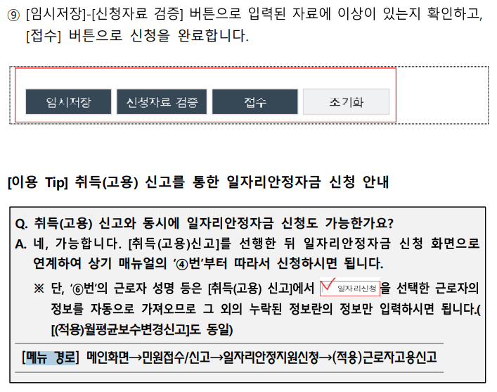 - 지원금 지급내역 조회: '일자리지원금 조회' > '지원금지급내역'을 선택하여 확인합니다.