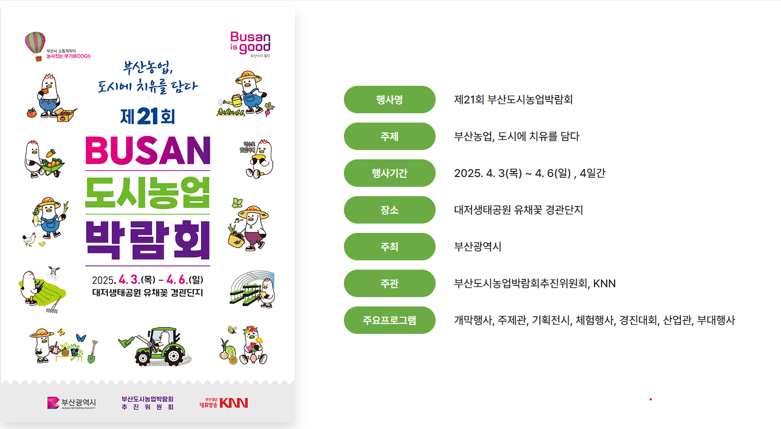 - 주관: 부산도시농업박람회추진위원회, KNN