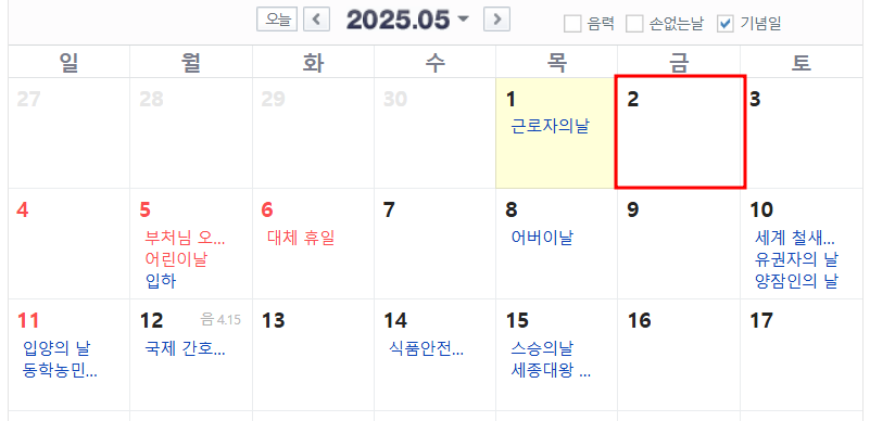 - 5월 5일(월): 어린이날 & 부처님오신날
