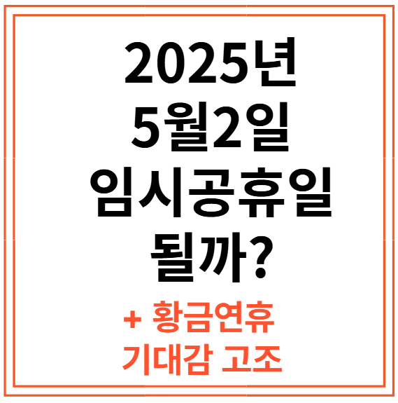 현재까지 정부는 5월 2일을 임시공휴일로 지정하겠다는 공식 발표를 하지 않았습니다. 그러나 과거에도 명절이나 기념일 사이에 임시공휴일을 지정한 사례가 있어, 향후 정부의 결정에 따라 변화가 있을 수 있습니다.